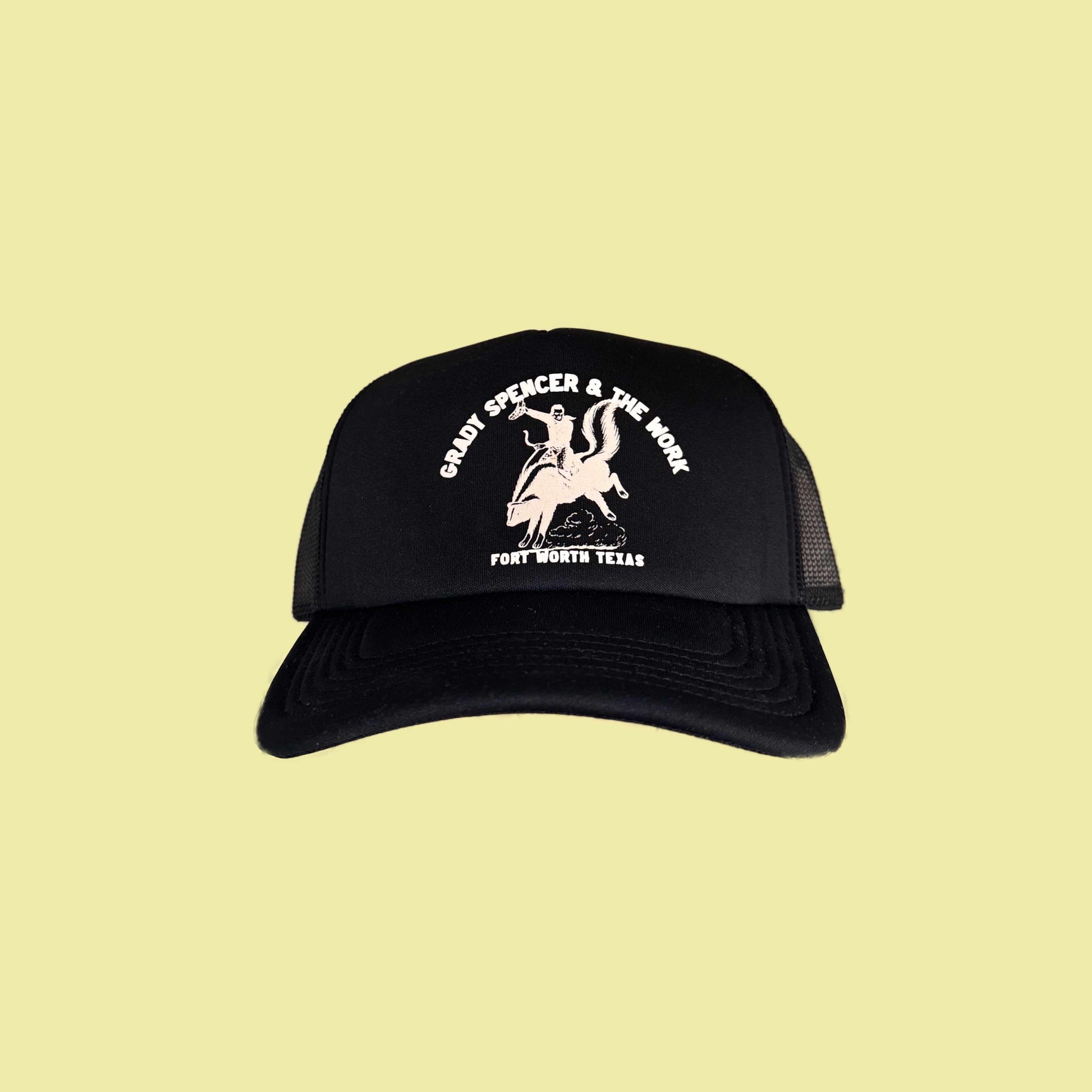Confuse all of your friends and family with a man riding a giant skunk on a cool black trucker hat!